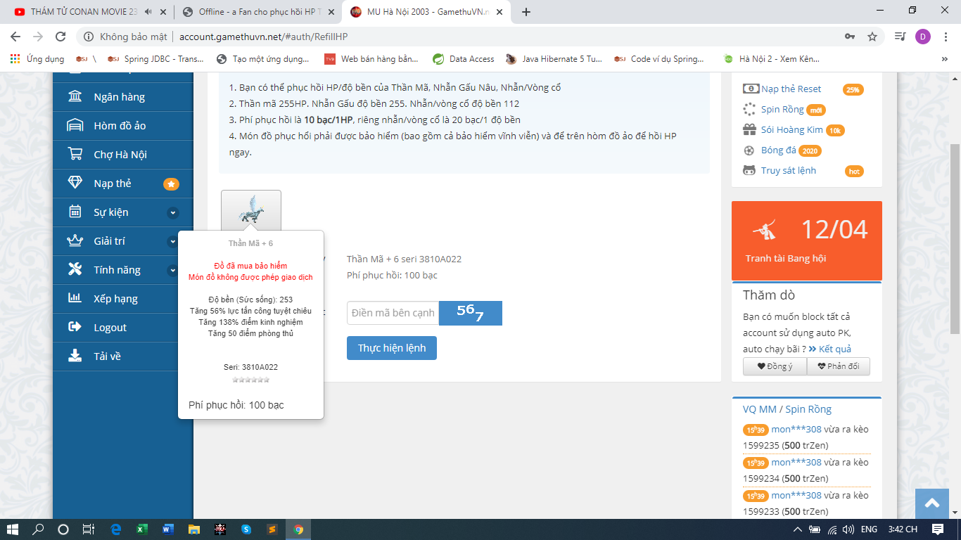 Offline a Fan cho phục hồi HP TM+6 it HP