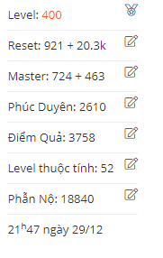 Bán Cặp vc DK - F Có ring Hậu Thư SSK theo acc Level: 400 Reset: 924 + 20.3k Master: 768 + 463 Phúc Duyên: 564 Điểm Quả: 3758 Level thuộc tính: 52 Phẫn Nộ: 18870 Đồ GD được: Pen Công DK - DL 2 lửa Set TL+ Khiên HL 3 max TPK K5 chuẩn Long Giáo k5 chuẩn W4 DK Luck OP Hp 2 ex HP+ SMTC Hoặc giao lưu sang DW Liên Hệ Zalo 0336630902