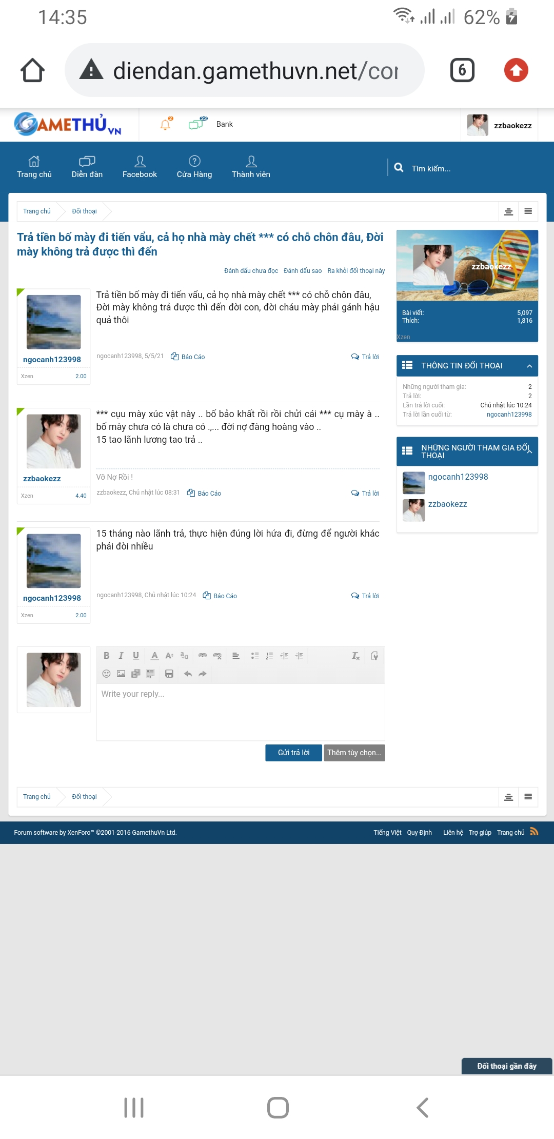 mọi người thây công ty bao kê chưa, nhắn cỡ đó mà ko thềm đọc kiếp sau có nhất định sẽ trả, (ps mọi người hãy yên tâm mà gd với công ty bảo kê xin chào đón tất cả 500 ae)