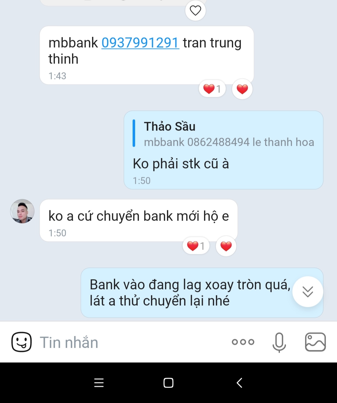 12. 1h sáng nhức cả đầu, mua bán gì như ăn cướp, giục vội chuyển tiền, gọi zalo liên tục, số tài khoản và số điện thoại trùng với số của @fantasymc cảnh báo ở trên -> Chỉ có hacker 100% thôi