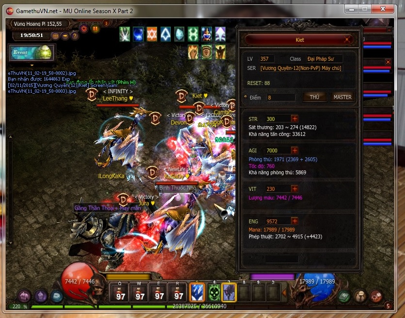 1. Gậy HD +14 luck 10% 2% 2. Pen băng 10% 2% 3. Ring phù thủy + ước nguyện 4. Sw2 +14 dòng 60% pt 5. Pet hoàn hảo + tuyệt chiêu max tiến hóa 6. Đại quỷ 7. Sói HK 8. Buff Elf + RF + GL max buff 9. Bùa ma thuật + 500 ene + STHH + sting ......chưa biết đã full buff lắc chưa nữa nhưng: Bác nào sắm và test đi cho e con số dame bao nhiêu với
