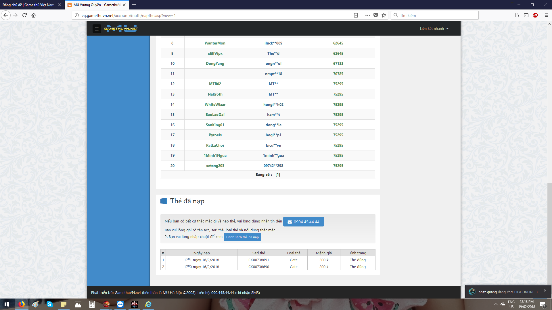 14. số lượng ng nạp rất rất nhiều, nên cho tí thời gian đi. top nạp thẻ đã dc add vì chỉ có 9 top. có nghĩa là admin có trả thưởng