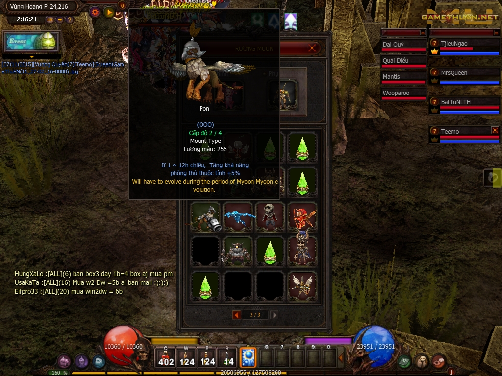 hôm nào tích để dành 2 con up 1 phát xem damg đc bn rồi kéo đi săn bó cũng nên, tăng max vit đi cc cho bá :v