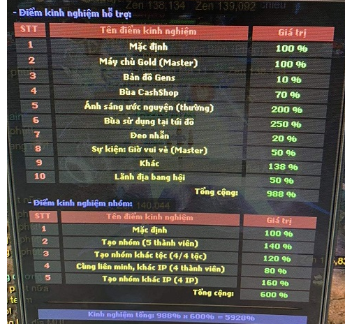 chung ip thì sẽ ko dc thêm exp ở cột này