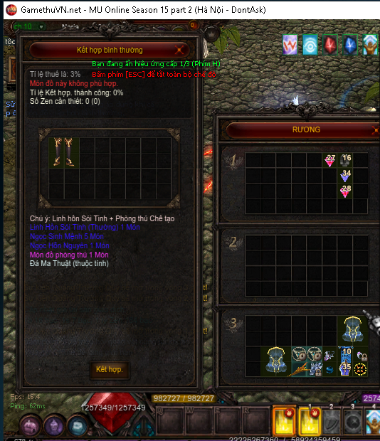Rồi thì đến tiết mục ép "Ancient Hero Soul" - đồ thần cũ ss12 + 11 +16 option xoay tỉ lệ 80% ra.