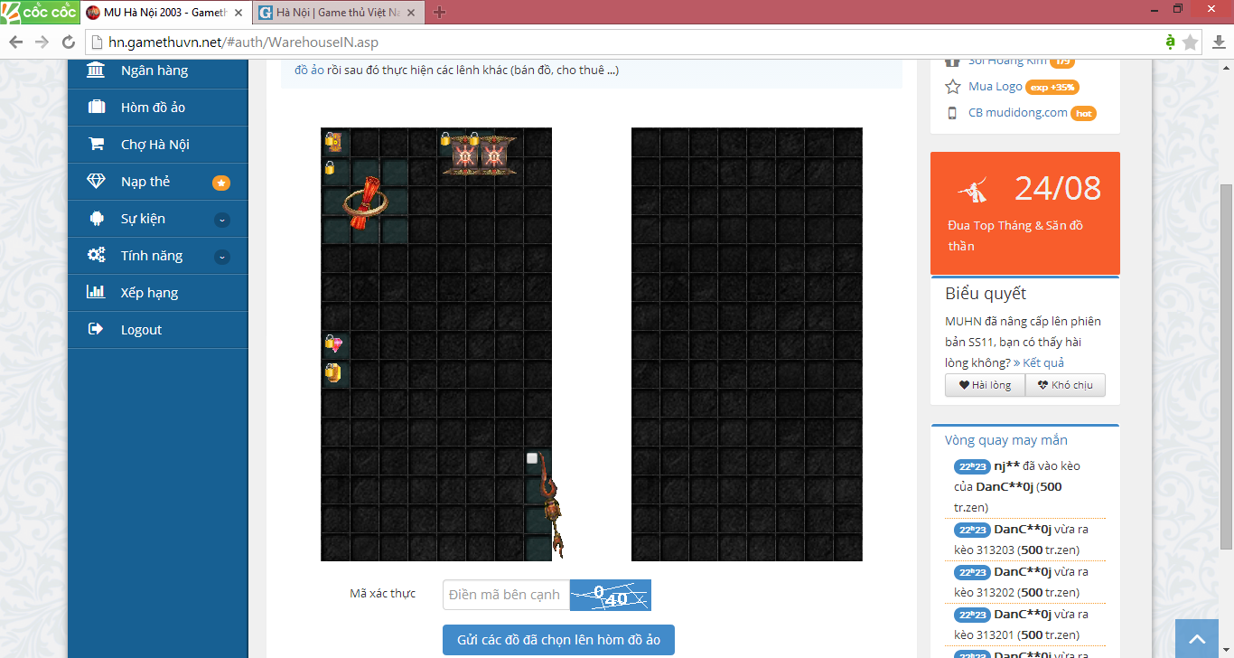 sao lại ko có sự trả lời nào từ BQT ạ.... giờ thẻ bài chaos ko sử dụng đc nữa thì ADM sửa lỗi hòm đồ giúp e với chứ... để như thế rất bất tiện ạ.... như bình thường ở trong game mình muốn đưa đồ vào rương đồ thì chỉ cần clich chuột phải là món đồ tự xếp vào rương, nhưng hòm đồ của e bị lỗi nên ko thể làm thế đc... BQT có thể vào kiểm tra và sửa lỗi giúp e đc ko ạ.... @fantasymc @saivado1 ......