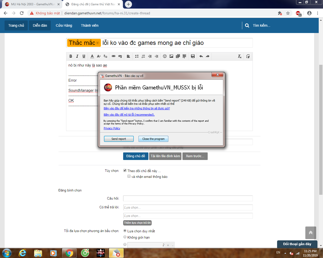 Thắc mắc lỗi ko vào đc games mong ae chỉ giáo