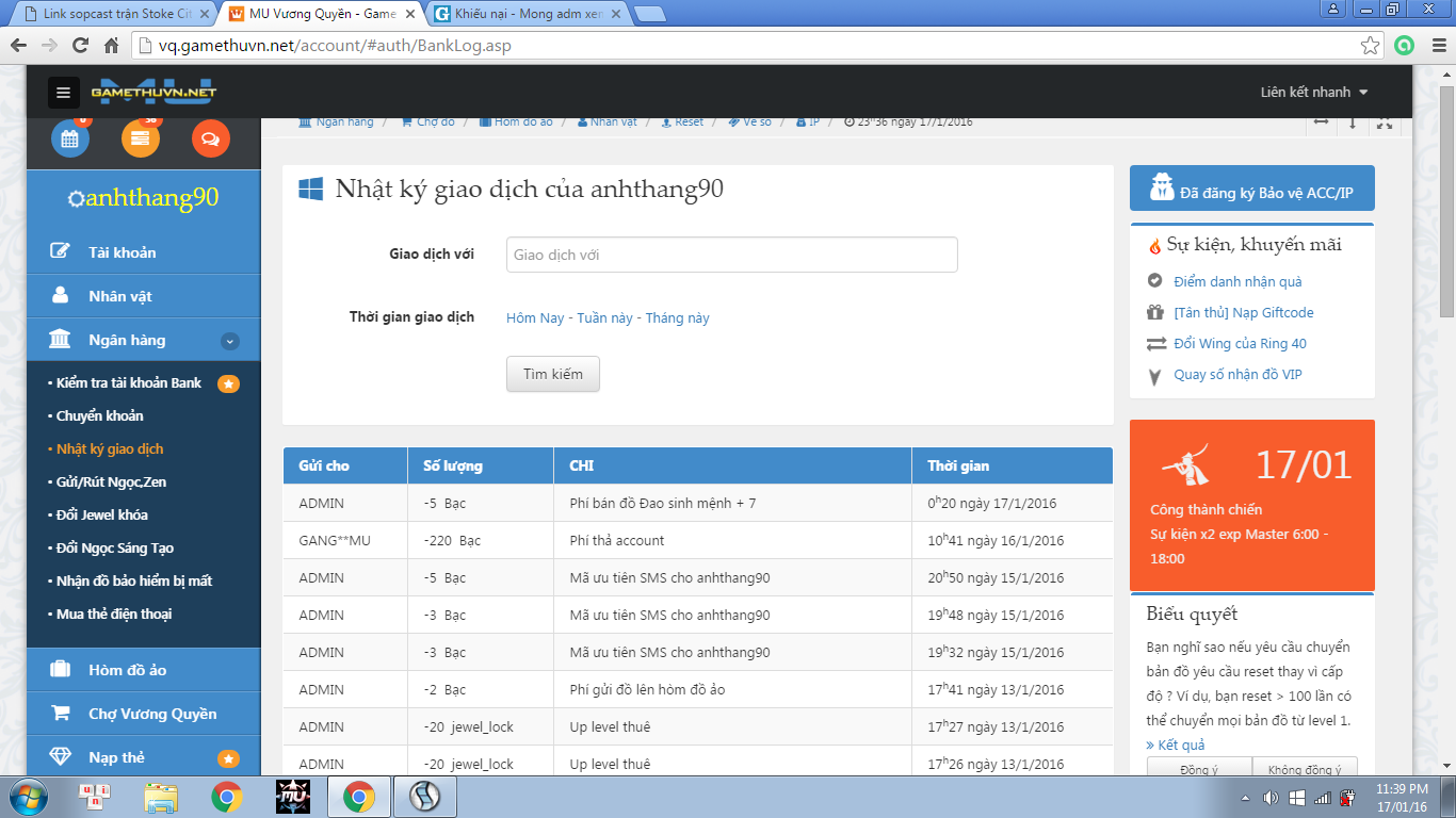 Đã thu phí và thả account, Sau 2 giờ nếu chưa nạp cho bên kia, thì xem như account ra đi vĩnh viễn được rồi