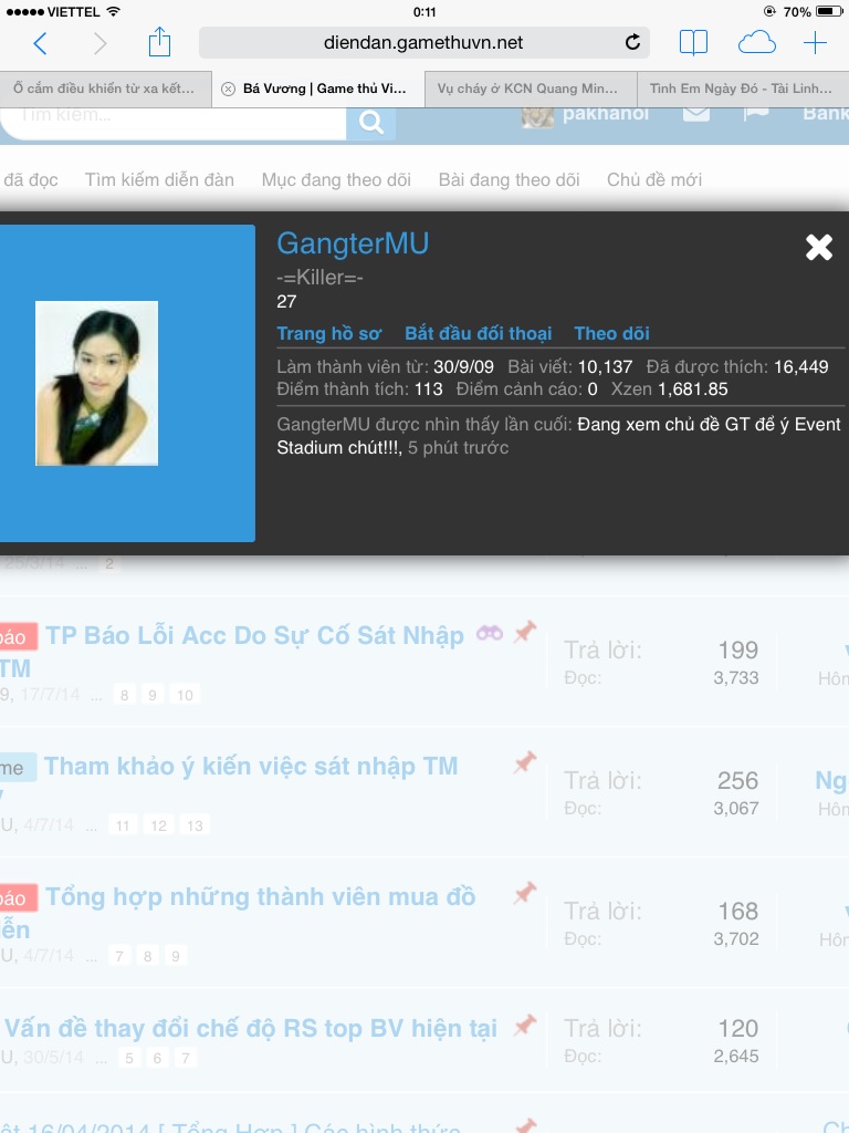 Trc tiên t xin cảm ơn cậu vì đã gửi bài của t bên TAB cho GT GT làm ăn chả ra cái gì cả.nói thì ngon ngọt rồi bỏ bê ae kêu gào.t mất đồ do lỗi của t khi đổi chủng tộc.t lập pic báo cáo xem GT giải quyết như thế nào có lấy lại dc đồ hay không,không chỉ dd mà còn pm riêng FB rồi.Vậy mà mấy tháng trời GT vào trả lời do thời gian quá lâu và món đồ k tồn tại. Vậy cho t dc hỏi 1 câuo GT bỏ bê ae BV hay là vì lý do gì?