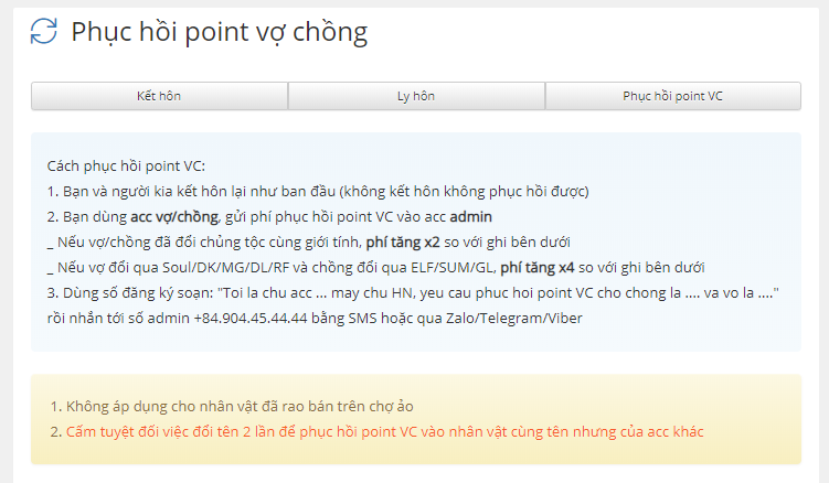 Theo e a Fan cho đổi tộc giữ nguyên poin vc, vẫn tính phí 8k cũng đc. Vì nhiều lúc thằng ck con vk chả biết ai cầm sao mà tự kết hôn