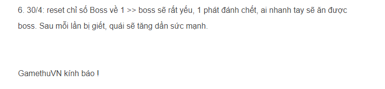 Thắc mắc Từ 30/4 sức mạnh boss bị reset về 1? Anh em đã thử?