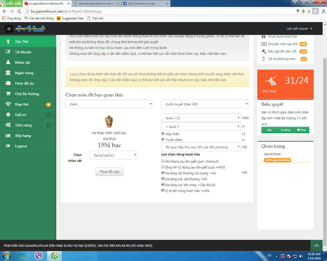 Thông báo UP đồ rồng cấp 2 cho Bá Vương