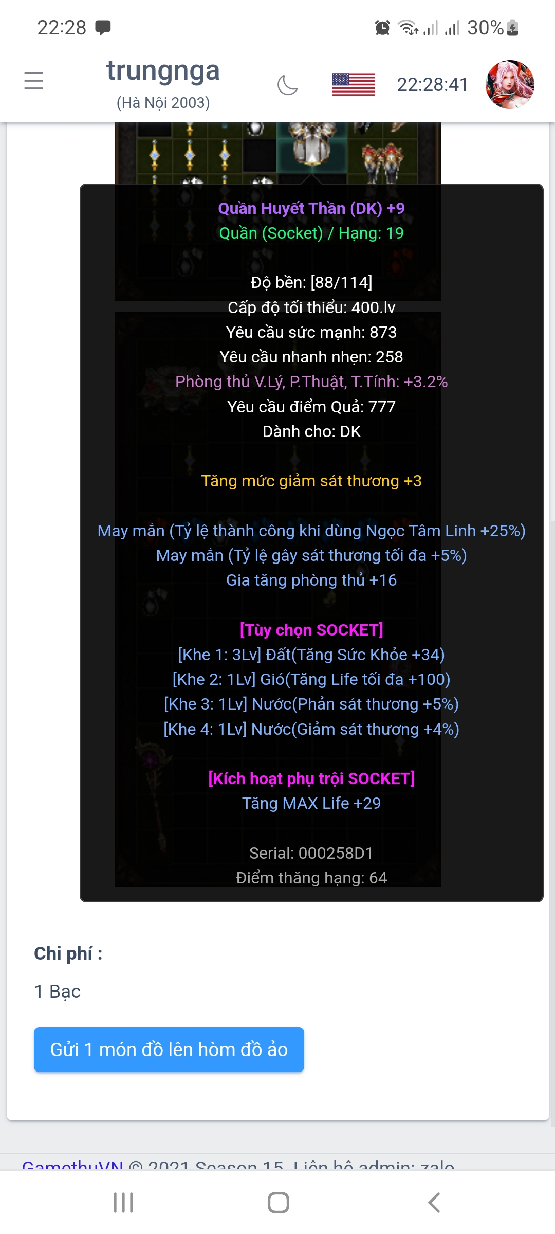 đồ sk hiện tại đã có dòng vàng, dòng x gần full,5 khảm đến lv10 đã rất OP mà cả đời thằng cầy chay như mình k thể mua đc :))