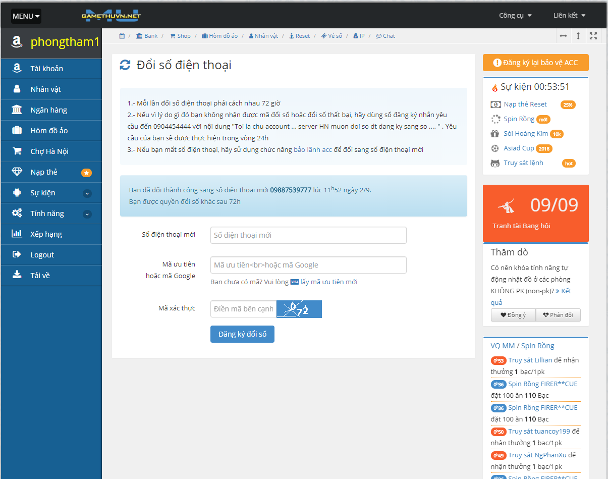 Thắc mắc Admin giúp đổi lại số điện thoại hợp lệ