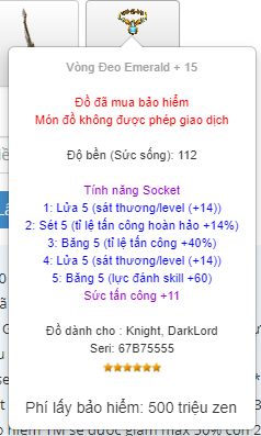 Bán Cặp vc DK - F Có ring Hậu Thư SSK theo acc Level: 400 Reset: 924 + 20.3k Master: 768 + 463 Phúc Duyên: 564 Điểm Quả: 3758 Level thuộc tính: 52 Phẫn Nộ: 18870 Đồ GD được: Pen Công DK - DL 2 lửa Set TL+ Khiên HL 3 max TPK K5 chuẩn Long Giáo k5 chuẩn W4 DK Luck OP Hp 2 ex HP+ SMTC Hoặc giao lưu sang DW Liên Hệ Zalo 0336630902