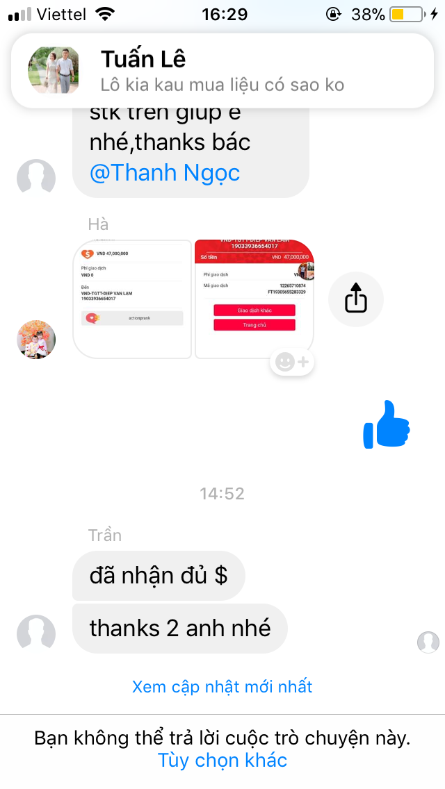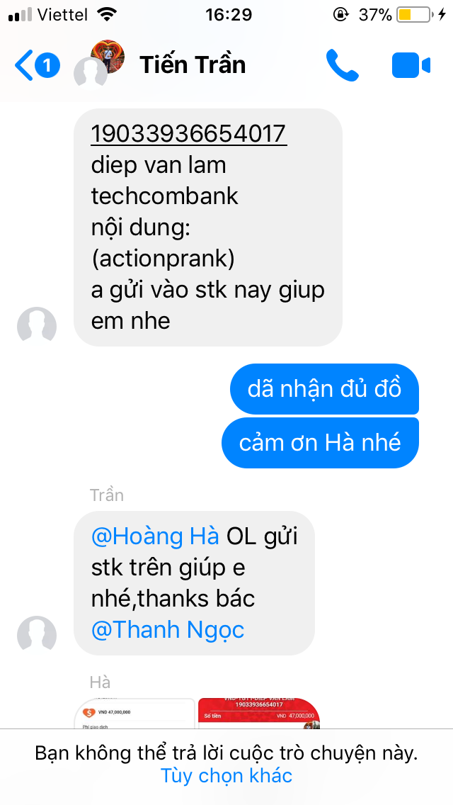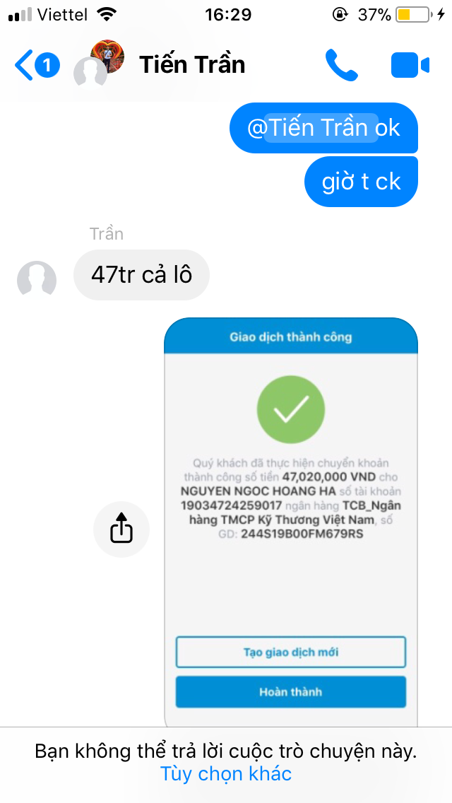 Thế thì nó là lừa đảo chiếm dụng tiền mặt rồi ô Chứ mấy thằng cu trong sg 98 99 nó gom order đồ cho khách Đôi giày 15m nó order có 12m thi nhau mua Xong nó làm phát 500m tiền khách, biết rõ nhà nó ở trường nó học nhưng công an không làm gì được vì tất cả đều giao dịch qua chuyển khoản