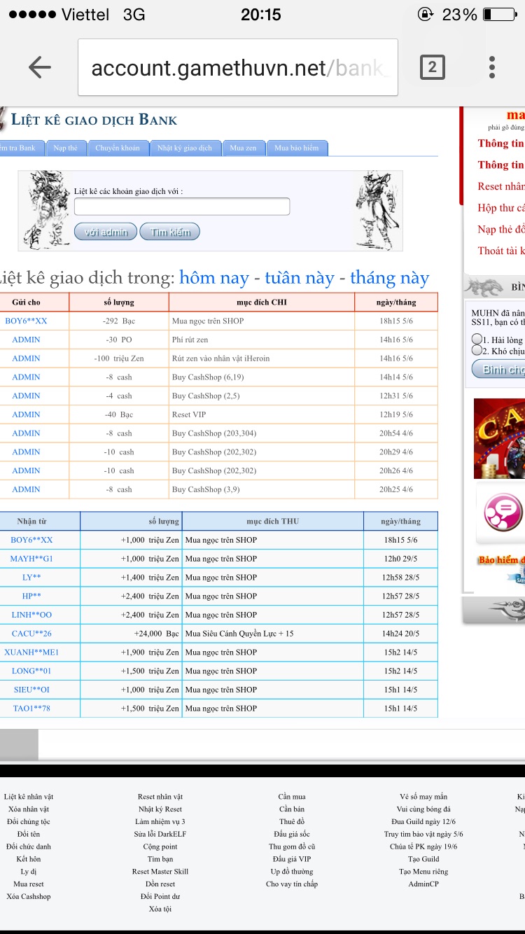 8 về game báo mất đô khi rao đồ lên chợ ảo anh Fanl vào giải quyết hộ em.