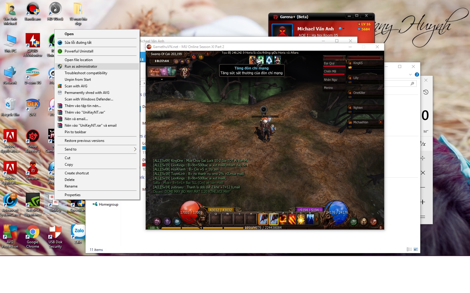 Có pro nào hướng dẫn mình đánh tiếng Việt có dấu khi chơi mu trong win10 hem.