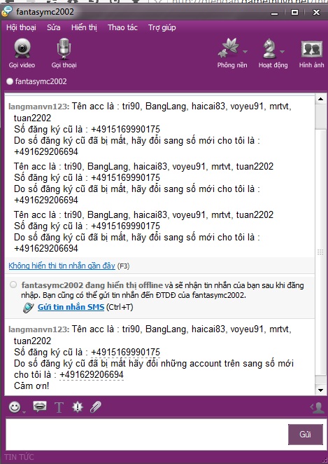 của bác là mất sim và sim bác đã đăng ký nên làm lại được, còn thớt này là đổi sai SDT không tồn tại nên không được như bác sao không bổ xung tính năng câu hỏi bí mật hay phần Email riêng cho cái phần SDT hả AD, trong trường hợp mất SDT thì còn có thông tin mà lấy lại chứ, còn cái việc acc mình mà cho người khác mượng thì mất AD không cần giải quyết, tin tưởng mới cho mượng, mất acc thì ráng chịu thôi, mong AD xem và bổ xung tính năng hổ trợ cho AE tốt hơn!( vẫn biết là khó nhưng vẫn mong sẻ có)