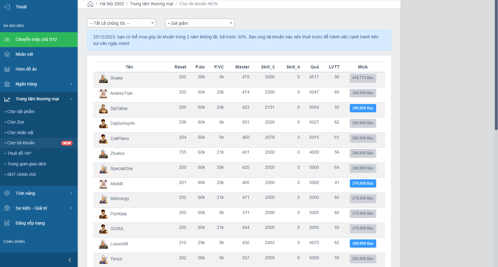 bên SS12 fan bán acc = giá chủ acc vay cũng rẻ