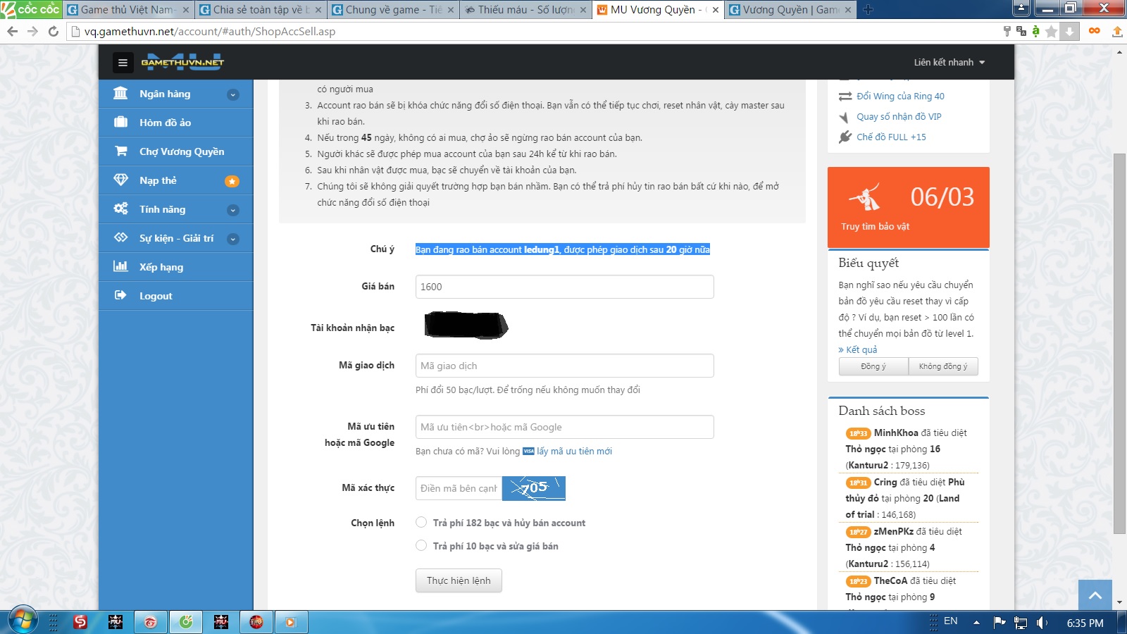 Tình hình là chiều nay mình mới rao bán 1 acc trên chợ. Log acc khác thì lại ko thấy trên chợ mà vào acc đó lại thấy đã đc rao bán. Như vậy là sao hả ad, hoang mang quá