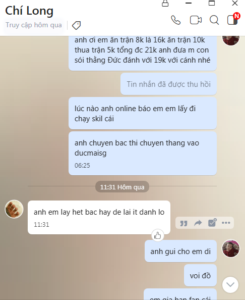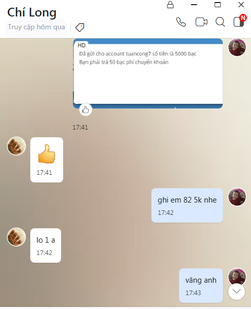 5. chắc có uẩn khúc , Chứ thằng Chung chủ acc tuancuong7 , nó làm ở Bộ công an , chắc ko đến nỗi 5k bạc =375k vnd mà đi lừa đảo