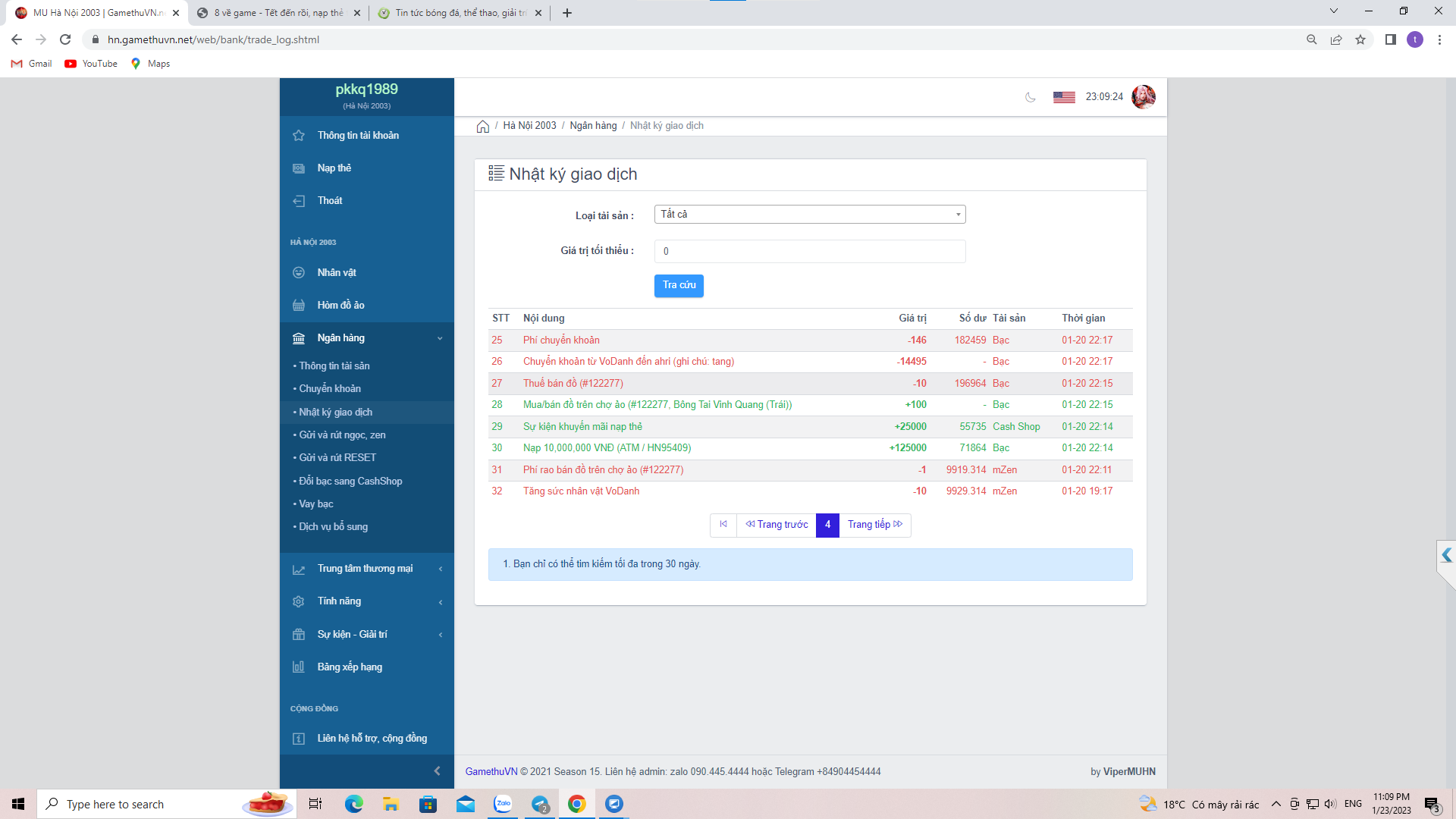 1 Trả nợ bạc vay -39464 52764 Bạc 01-23 06:56